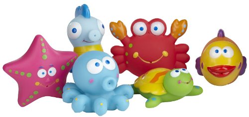 This bath set makes a wonderful gift for baby showers and birthdays Six brightly colored squishy squirties compose this set in the shapes of fancy sea critters including a flounder octopus seahorse sea turtle crab and starfish The entire set comes in a handy clear plastic carrying case wit Read More..