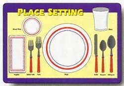 Place Setting shows proper placement on table Learning Placemats Study on one side and practice on the other Use erasable markers on reverse side Washable for fun and practice 12 x 175 Read More..